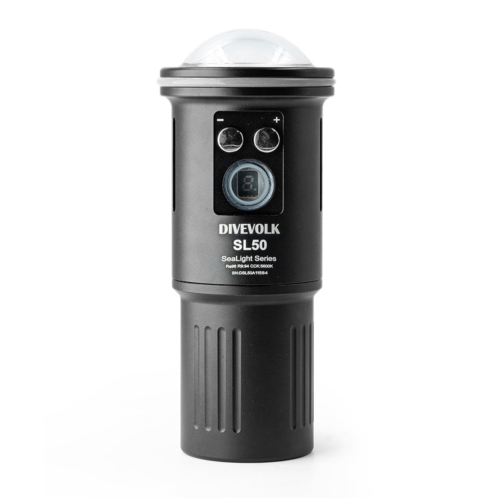A compact yet powerful underwater video light designed to enhance your underwater photography and videography experience. The SL50 is the perfect companion for smartphone, compact cameras, GoPro devices, serving as an ideal focus light for bringing lost colours back to life. With a maximum output of 5,600 lumens, it brilliantly illuminates your underwater scenes, making it especially effective for night diving adventures. The SL50 features 9 levels of illumination, allowing you to customize the lighting intensity to suit various underwater conditions and creative needs. Equipped with a dual battery system, it provides up to 200 minutes of operation at 1,150 lumens, ensuring long-lasting performance for extended dives. With its robust construction, it is waterproof up to 100 meters, delivering reliability in deep-water exploration. The 120-degree illumination angle offers expansive light coverage, giving you the flexibility to experiment with different lighting angles and unleash your creativity like never before.