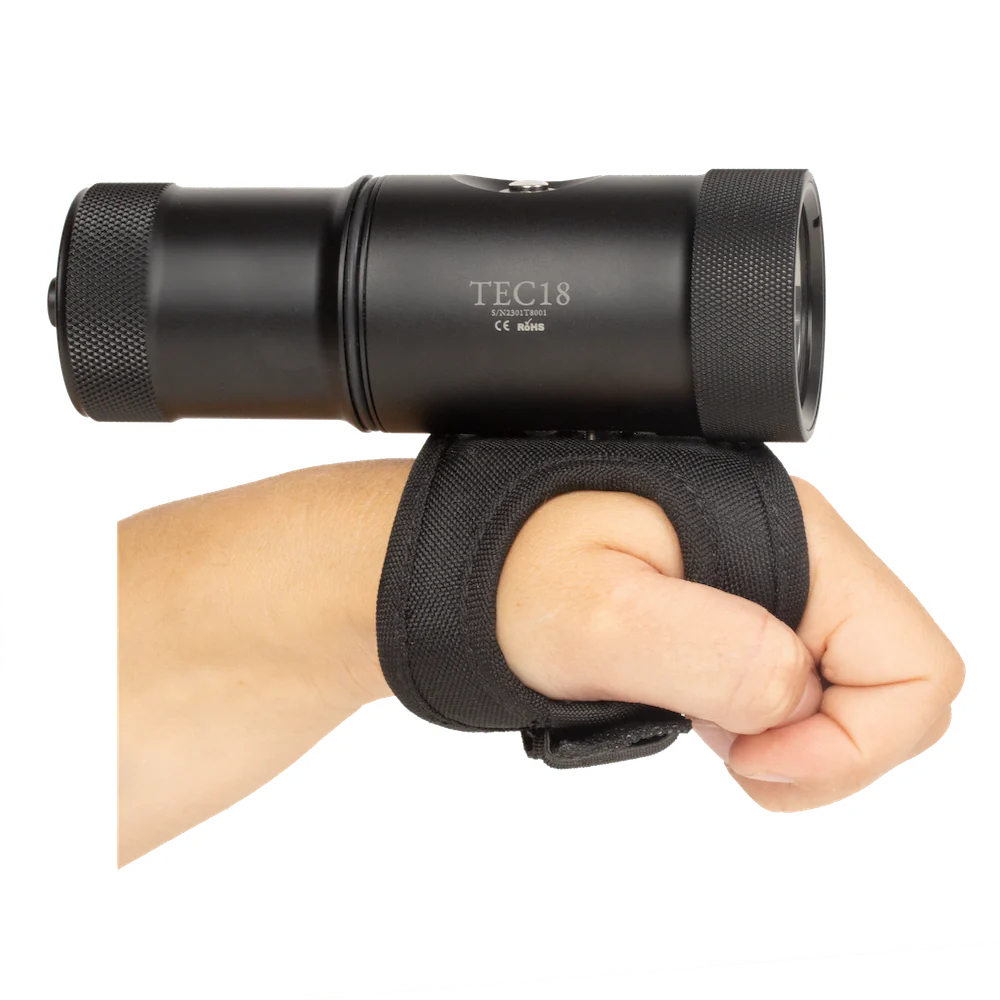 This 1800 lumen torch has a 3 hour runtime on high without the size of a canister light and still hosts a 6 degree beam angle, perfect for signalling. A must have on any technical dives. This light comes with a soft goodman glove for easy wear and hands free diving. It has four battery setting to allow for increased battery life and a battery level indicator around the push button switch. The light charges to full in approximately 3 hours.
